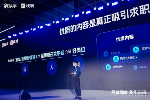 作为人力资源服务新质生产力的代表,过去一年,快手快聘顺应招聘趋势,基于海量内容与岗位的结合,搭建求职双方智能化的沟通链路,大幅提升招聘匹配效率。2024年,快手快聘将持续构建基于内容与算法、视频直播与社交相结合的招聘生态,提供内容招聘的系统性解决方案,与生态伙伴一起重构老铁的求职决策。