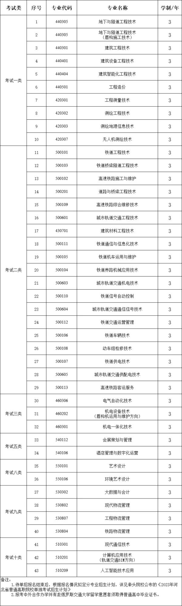 七、石家庄铁路职业技术学院2023年单独考试招生专业