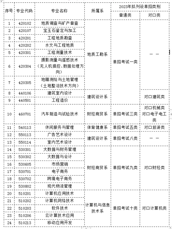 河北资源环境职业技术学院 (原河北地质职工大学) 2023年单独考试招生简章