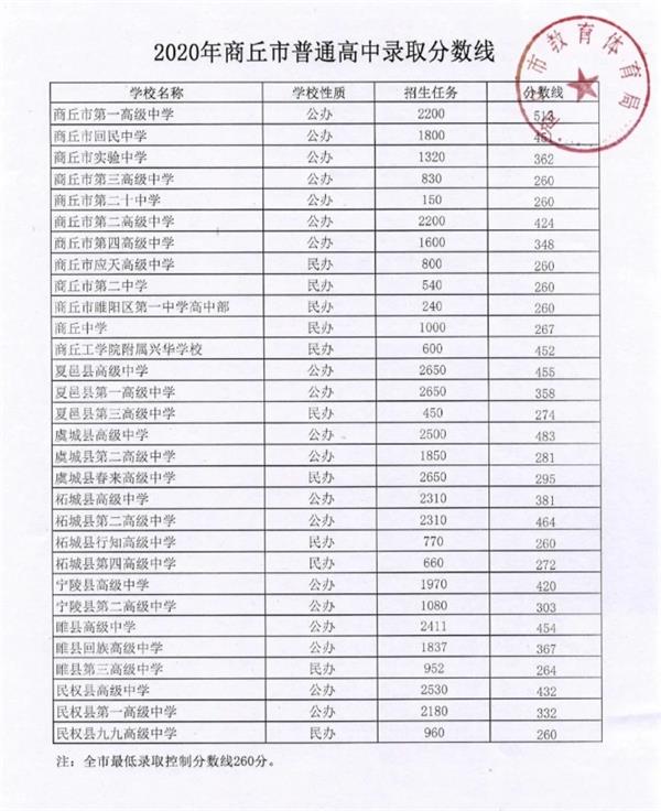 2021年河南省商丘市中考录取分数线暂未公布,小编为大家整理了2020年分数线作为参考。2021年分数线将在官方公布后进行更新,请大家持续关注。