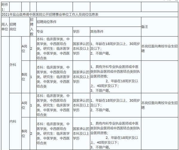 附件1.《2021年盐山县寿甫中医医院公开招聘事业单位工作人员岗位信息表》